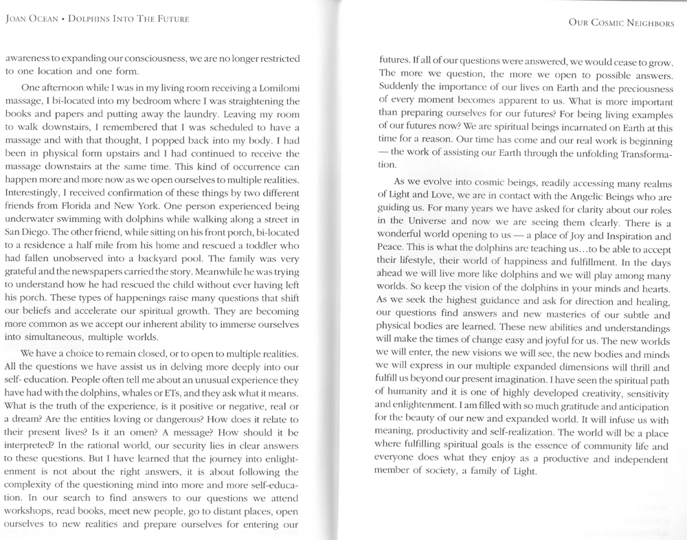 "Dolphins Into The Future" by Joan Ocean, 1997 page 174